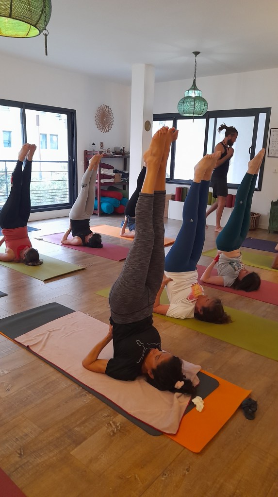 - l’utilisation de supports : sangles, murs, briques, couvertures, chaises…qui facilitent l’apprentissage des postures.